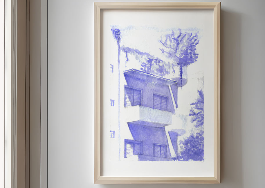 One of those buildings in the heart of Tel Aviv, close to Dizengoff Square that really represents the soul of this city. This painting is mono-colored, romantic, and overflowing with plants...